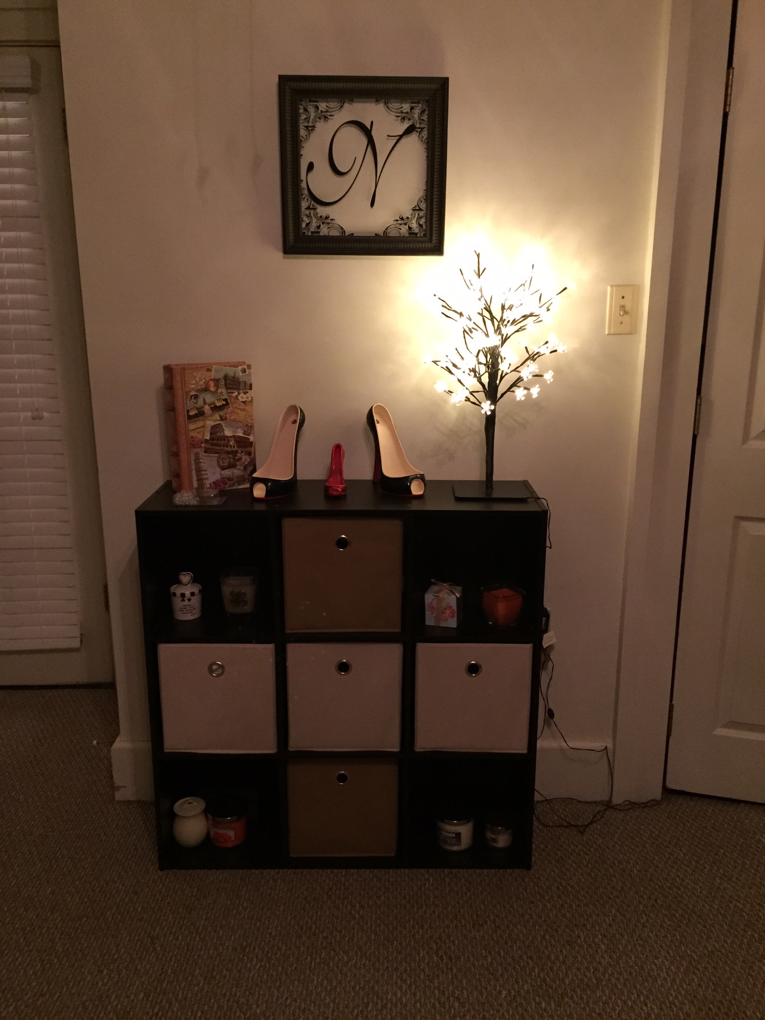 So I will never buy a shelf like this unless I have someone who want to put it together for me! It was one of those things that you do once and you are good. She had to buy the baskets and she finished decorating it.